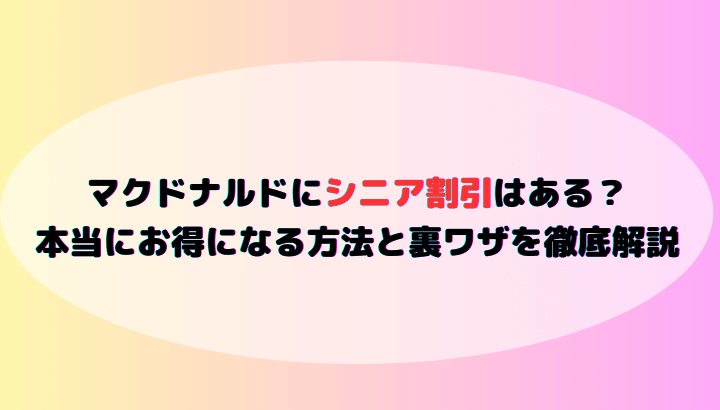 このページでは、マクドナルドのシニア割引の有無・活用できる裏ワザ・他店との違いをわかりやすくご紹介します。